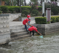 2015年7月13日 上午,济宁医学院法医学与医学检验学院“三下乡”服务队全体队员在带队老师周艳芳的带领下来到太白湖景区进行景区水质监测的采集取样工作。 活动进行中烈日炎炎,队员的热情与执着感染着过往行人。队员们分为两组开展志愿活动,一组宣传医疗知识,分发常见疾病预防手册,并对游客的提问耐心解答;另一组宣传环境保护理念,以散发传单形式向游客们宣传水资源保护、垃圾处理、环境污染的知识,引起了游客对环境保护的重视。 随后,队员们分组对太白湖不同湖区的地表水进行取样,将取得的水样进行细致的分类,统一带回实验室,利用专业优势检测水样的酸碱度、重金属含量等相关指标。 通过本次活动,队员们加深了对所学专业知识的理解,同时也以自己的实际行动践行了习近平总书记的“八字真经”,为太白湖景区的环保工作作出了自己的贡献。 队员们在太白湖景区不同湖区进行水样的采集