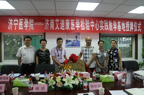 714日至16日,我院分别在济南艾迪康医学检验中心、济南金域医学检验中心、青岛兰信医学检验所(青岛金域)等单位举行实践教学基地挂牌仪式。法医学与医学检验学院党总支书记郑红、学校实践教学管理处副处长李汉东、法医学与医学检验学院副院长张凯、综合科科长秦茂森参加了挂牌仪式。