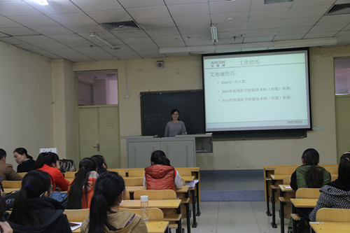 11月20日,济南艾迪康一行四人来到济宁医学院法医学与医学检验学院进行校园宣讲。济南艾迪康检验中心实验室主任孙学民,招聘培训经理关颖,我校2010届毕业生现艾迪康员工代表杨淑凤等组成主讲团队进行宣讲,法医学与医学检验学院党总支书记郑红,团总支书记郭娜,辅导员孟阳参加的此次活动。 下午两点,济南艾迪康校园宣讲会在教室514正式开始,12级本科,13级本科,14级专科、专升本医学检验专业近百名学生参加了此次宣讲。首先,关颖女士介绍了ADICON公司情况及此次宣讲会流程。然后,孙学民就艾迪康检验实验室和公司的市场状况和发展前景等和同学们进行了分享,让同学们对艾迪康公司的宗旨、质量方针、质量目标有了初步的了解。随后,关颖女士在职业生涯规划、艾迪康人才理念、薪资与待遇等方面为同学们进行了详细的介绍,教室气氛热烈,同学们热情高涨。杨淑凤作为师姐,把自己在艾迪康的工作经历分享给大家,让同学们对艾迪康的工作有了进一步的了解。最后,关颖女士和同学们进行了约20分钟的互动,同学们结合自己的检验专业知识踊跃发言,对各个岗位的信息和自己关心的问题进行问询,每个同学都得到了详尽的解答。济南艾迪康济宁医学院宣讲会在愉快热烈的氛围中正式结束。 这次校园宣讲会拉近了企业和学生们的距离,对同学们培养正确的就业观具有重要意义。 |