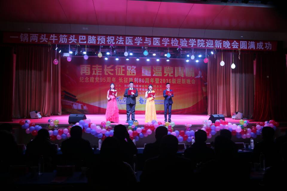 为庆祝建党九十五周年、长征胜利八十周年,引导青年深刻认识到党领导红军进行长征的伟大历史意义,2016年11月25日晚7时,法医学与医学检验学院在大学生活动中心成功举办了以“再走长征路,重温党真情”为主题的迎新晚会。出席本次晚会的嘉宾有济宁医学院副院长兼法医学与医学检验学院院长兼济宁医学院司法鉴定中心主任崔文,学生处处长陈吉义,法医学与医学检验学院党总支书记郑红,法医学与医学检验学院副院长张凯,济宁医学院团委副书记刘瑞文,综合科科长秦茂森,法医学与医学检验学院团总支书记郭娜,法医学与医学检验学院辅导员孟阳,周艳芳,唐远深。特邀嘉宾钟晓玲老师,法医学与医学检验学院学生会主席团。此次晚会面向全校师生开放,活动中心充满欢歌笑语,期间观众激情四射,掌声连连,会场气氛活跃,阵阵欢呼声响遍整个大厅,意义非凡。