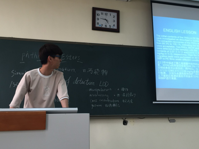 卫生检验专业英语由于缺教材,多年来一直处于教学目标、教学内容不明确、开课难、授课难、学生缺乏兴趣、成绩差的困境。本学年,卫生检验教工党支部和卫生检验教研室计划携手共建,教工党员带头,率领其他教师共同组成授课团队,以提高学生考研复试成绩为目的,确定专业英语的授课内容为检验专业复试英语文献翻译。按照考研复试的要求,专业英语的授课内容所用文献取材于教师从外文期刊网上精选的卫生检验专业SCI论文。内容主要有卫生检验样品前处理技术和分析测试技术。授课方式采用多媒体、启发式、分组教学,注重师生双边互动。 在教学改革的基础上,2017年5月底,项目组举办了专业英语风采大赛,大赛采取自愿报名的方式,学生报名积极踊跃,准备充分,结合自己的专业特色,从国外SCI文献中取材,并精心制作了PPT课件,采取中英文对译发方式,讲授精辟,风趣,幽默,现场气氛热烈,展现了良好的专业素养。该项目为学生考研复试打下了坚实的基础,获得广大师生的一致好评。