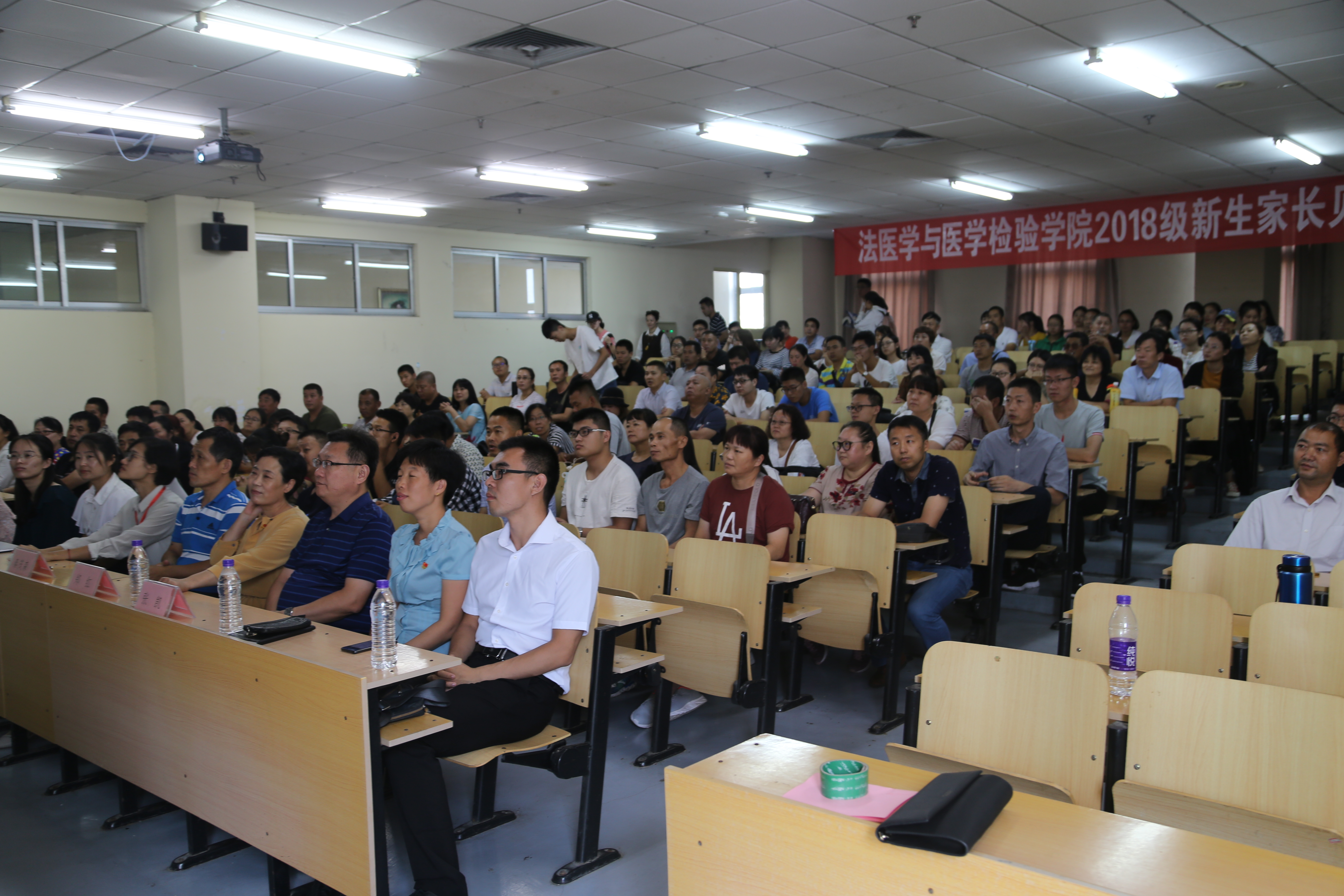 2018年9月8日,法医学与医学检验学院2018级新生家长见面会在我校太白湖校区教学楼201教室举行。法医学与医学检验学院党总支书记郑红、副院长张凯、党总支副书记秦茂森出席了此次活动。学院全体辅导员老师、2018级各班班主任和部分新生家长参加了本次见面会。学生管理科科长郭娜主持会议。 张凯代表学校对各位新生家长的到来表示热烈的欢迎与感谢,并从学院发展和基本情况、培养定位与目标、师资队伍建设、教学资源与条件、学分制改革以及学生发展与就业等六方面介绍了我院各项工作的开展情况,使新生家长对我院的专业和发展有了进一步的了解。最后,张凯期望广大家长与学院齐心协力,尽快帮助新生完成角色转变,激励他们奋发向上,再创佳绩。 郭娜就学生日常管理和安全等事项与家长进行交流。 本次新生家长见面会,架起了学校与家长的沟通桥梁,为家校互动、共促学生成长成才提供必要条件,为今后教学管理工作的顺利开展奠定了基础。