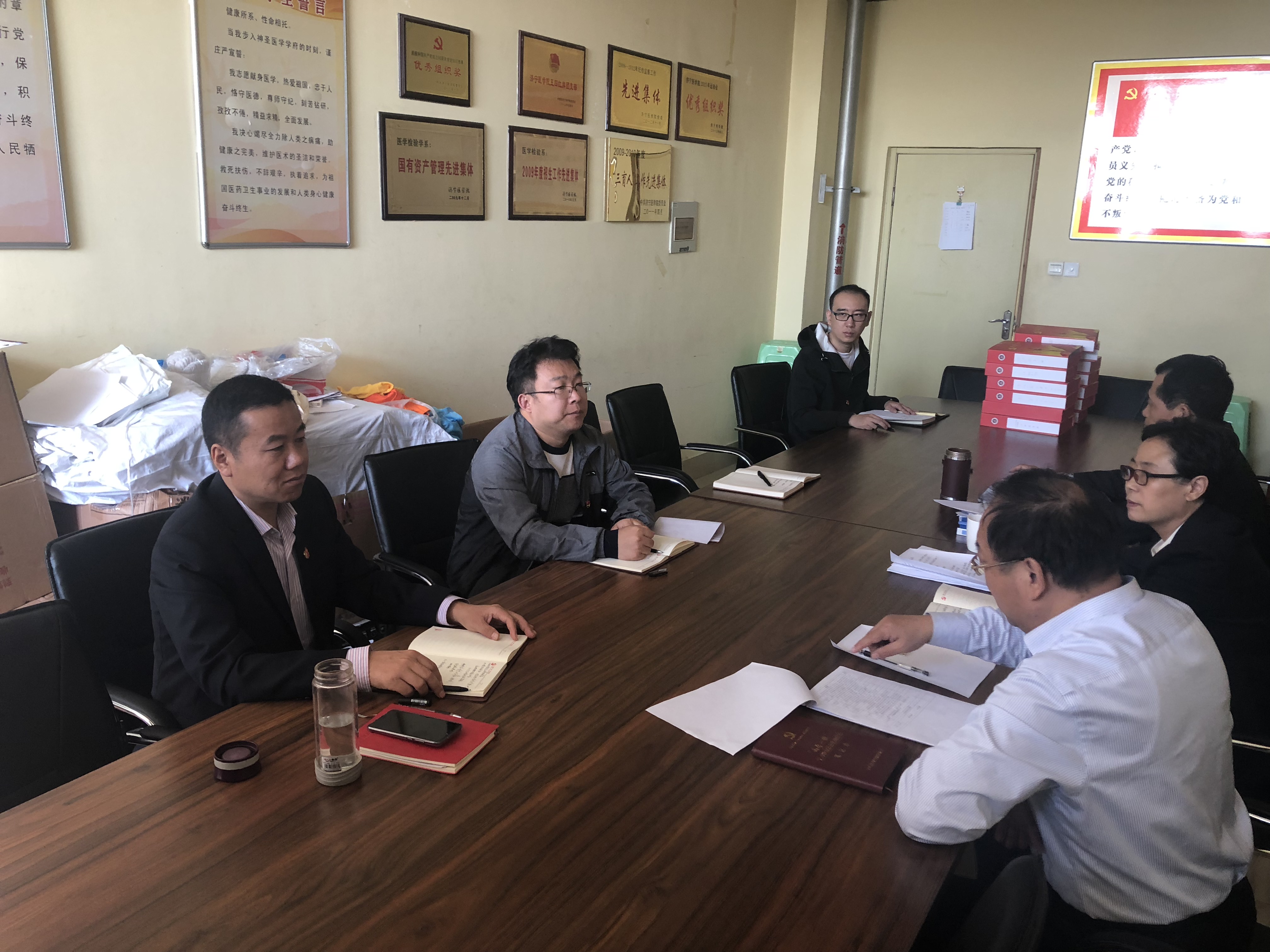 2018年10月9日,法医学与医学检验学院在南实验楼461会议室召开党总支委员会会议。法医学与医学检验学院党总支书记郑红,副书记、院长上官国强,副书记秦茂森与所有中心组成员参加了成员。会议由郑红主持。 会上,上官国强向大家传达了济宁医学院第三次党代会会议精神,对其中涉及我院建设的内容进行详细解读。上官国强指出,本次党代会是在学校加快实施“十三五”事业发展规划、贯彻落实全国教育大会精神、深化教育综合改革、扎实推进现代医药科技大学建设的关键时期召开的一次重要会议,对我院今后五年的发展提出了科学的规划与具体要求。上官国强指出,学院要继续在党的建设、卓越人才培养、专业建设提升、一流学科建设、师资队伍建设和先进文化引领六个方面加强工作。完善专业考核评估体系,开展特色专业建设,完成法医学专业进入全国同类专业前20%,医学检验技术专业进入全省同类专业前50%的建设任务,同时确立人才优先战略,争取博士比例达到30%。随后,秦茂森对开展“讲梦想,讲信念,讲教学,讲科研,讲服务”的“五讲”活动月进行总体部署。 本次党总支会议明确了发展目标,落实了责任分工,为学院今后各项工作的顺利开展奠定了基础。