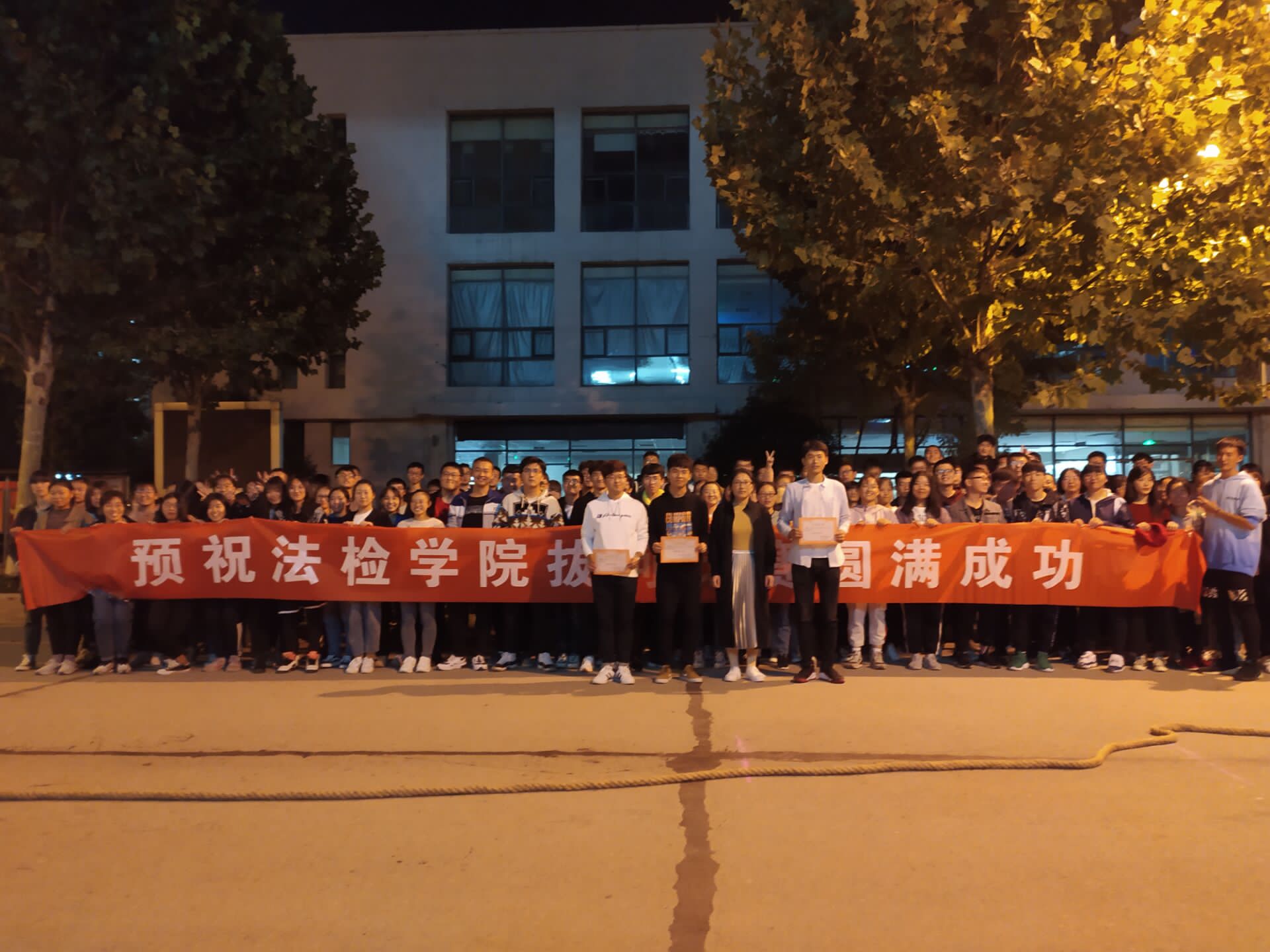 2019年10月30日晚,法医学与医学检验学院拔河比赛于我校南北餐厅之间拉开帷幕。法检学院党总支副书记秦茂森,班主任张雷雷出席活动。我院共60人参赛,其余同学到场观赛。 秦茂森老师发表讲话,希望同学们注重体育竞技精神,号召同学们积极参加团体活动,培养团队合作意识。比赛由三个班级两两组合,共分三场。号令声一响,参赛选手们都极力压低重心,拼命向后发力,周围同学的加油声一并响起,相机拍下了同学们脸上丰富的表情,让人忍俊不禁。最终,医检一班荣获第一名,法医一班与医检二班也分别获得了第二、第三名的好成绩。 本次比赛旨在增强同学们的团队合作意识与团队精神,为同学们培养集体荣誉感打下了坚实的基础,贯彻了体育精神丰富生活的积极主张。 撰稿人:高傲 责编:林涛 法医学与医学检验学院文体部 2019年10月30日 |